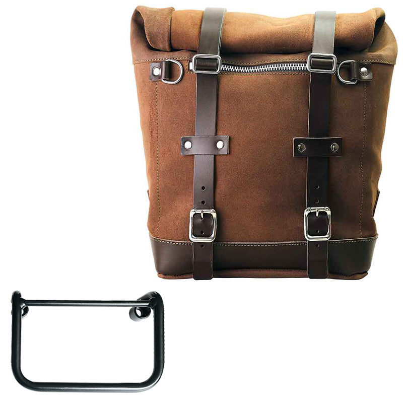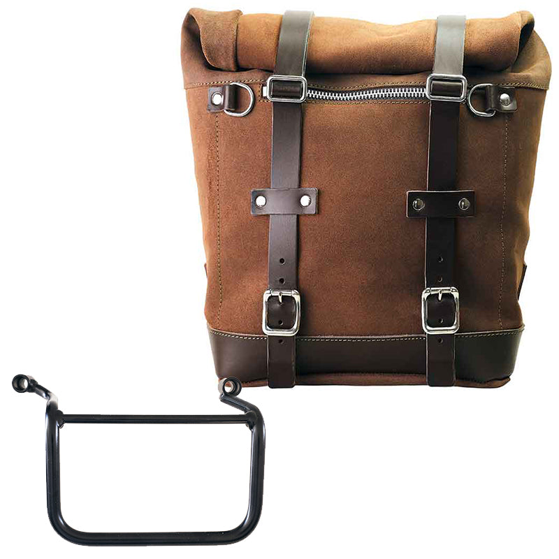 Scram side pannier extendable from 22 to 30 Liters handmade in Italy in sturdy top quality waterproof waxed suede leather.