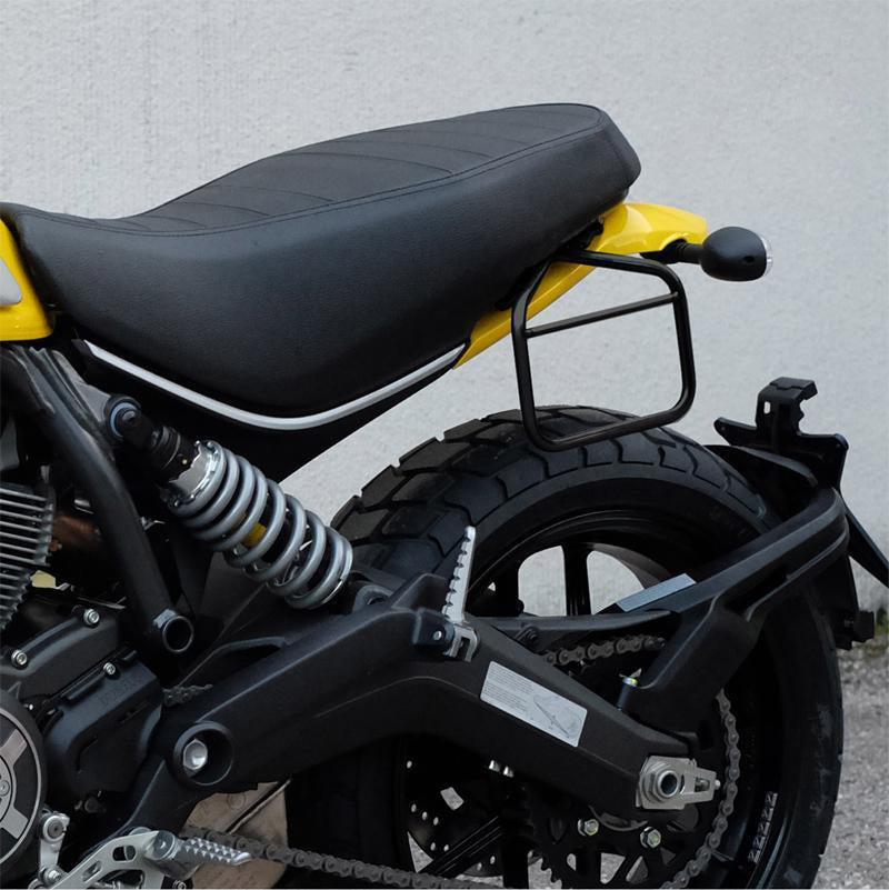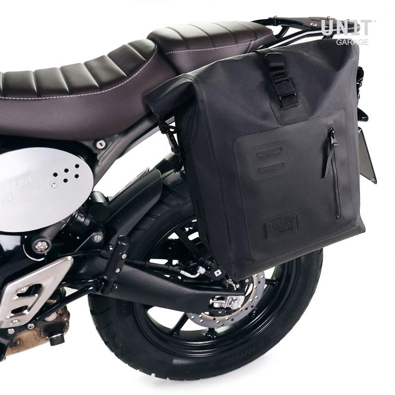 It is mounted on the left side of the bike. Specially designed to integrate seamlessly with the rest of the bike. Ready to host our quick release system, beautiful and minimal even when the bag is not mounted. It comes complete with screws and can be mounted easily on the bike in the original configuration. All accessories are compatible with each other except when specified otherwise. It can be used comfortably with the passenger on board.